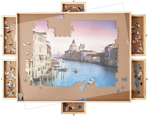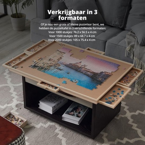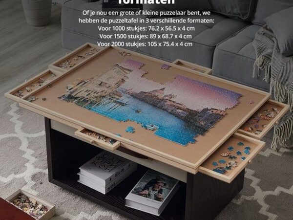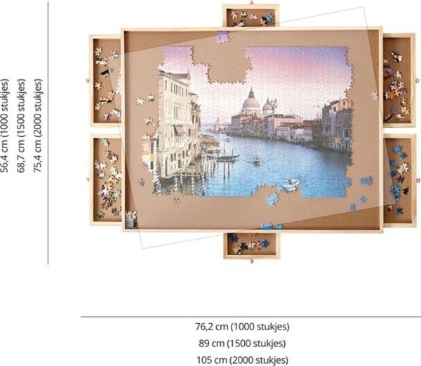 – er is een bord voor puzzels tot en met 2000 stukjes (105 x 75.4 x 4 cm)