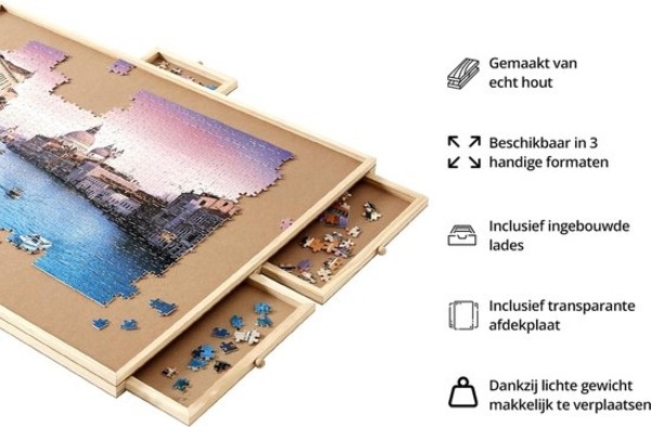 – er is een bord voor puzzels tot en met 1000 stukjes (76.2 x 56.5 x 4 cm)