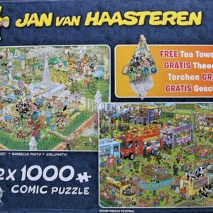 Het nummer 19079 van de Jan van Haasteren puzzel is een 2 in 1 puzzel. In deze doos zitten de puzzels: BBQ Party en Foodtruck Festival. NB: dit is de variant van de combidoos waarbij je een gratis theedoek krijgt. De exact zelfde combidoos ZONDER theedoek is het nummer 19099.