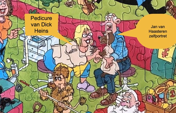 “Nog even 2 aanvullingen. Bij nummer 10 ziet u rechts de pedicure van Dick Heins. En bij nr 9 ziet u ook nog een verwijzing naar ons project Jvhontbrekendestukjes een poster met een puzzelstukjes en Wanted. Deze poster staat op meerdere puzzels. Leuk gedaan!”