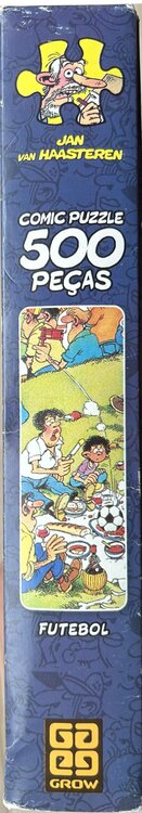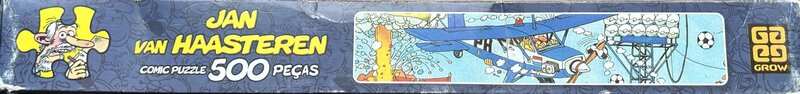 In totaal zijn er vier Jan van Haasteren puzzels uitgegeven door de Braziliaanse puzzelfabrikant GROW, namelijk: Extra bijzonder item, zie de Afbeeldingen 10 + 11: voordat deze puzzel werd gedrukt heeft dus iemand iets op de tekening geschreven! Je ziet dat iemand daar een rekensom heeft gemaakt en dat is deze (een optelling of aftrek): 1055 - 650 = 405. Dat lijkt de meest logische of anders 405 + 650 = 1055. Maar deze laatste is dan van onder naar boven. Een aftreksom lijkt dan de meest logische. En deze tekening is vervolgens gedrukt. Dit staat dus zowel op de doos als op de puzzelstukjes!! Prachtig detail