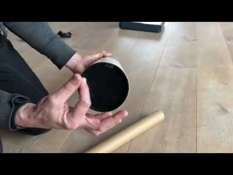 - Twee plastic doppen die je aan beide kanten om de hard kartonnen buis doet, zodat je de kartonnen buis afsluit