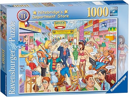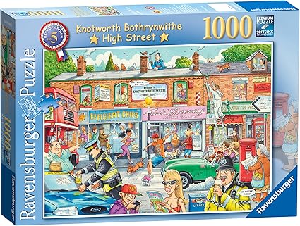 De “Best of British” puzzelreeks van Ravensburger is een verzameling legpuzzels die op een speelse en humoristische manier verschillende aspecten van het Britse leven en de cultuur belichten. Deze serie staat bekend om zijn speelse kijk op Britse smaken, trends en eigenaardigheden. De puzzels zijn gemaakt door Geoff Tristram, een kunstenaar uit de Midlands, bekend om zijn gedetailleerde en humoristische kunststijl. Elke puzzel in de serie is gemaakt van hoogwaardige materialen en bestaat meestal uit 1000 stukjes. Wanneer ze zijn voltooid, meten deze puzzels ongeveer 70 x 50 cm. Ze zijn ontworpen om zowel voor volwassenen als voor kinderen van 12 jaar en ouder leuk te zijn. De afbeeldingen op de puzzels zijn cartoonachtig en bevatten vaak humoristische personages en visuele grappen, wat een element van plezier toevoegt aan de puzzelervaring. Bijvoorbeeld, nummer 15 in de serie, uitgebracht in januari 2016, toont een scène in een discount supermarkt genaamd “Cheaposave”, gevuld met amusante personages en visuele grappen. Deze serie is een uitstekende keuze voor puzzelliefhebbers die genieten van een vleugje humor en een uniek perspectief op alledaagse Britse taferelen.