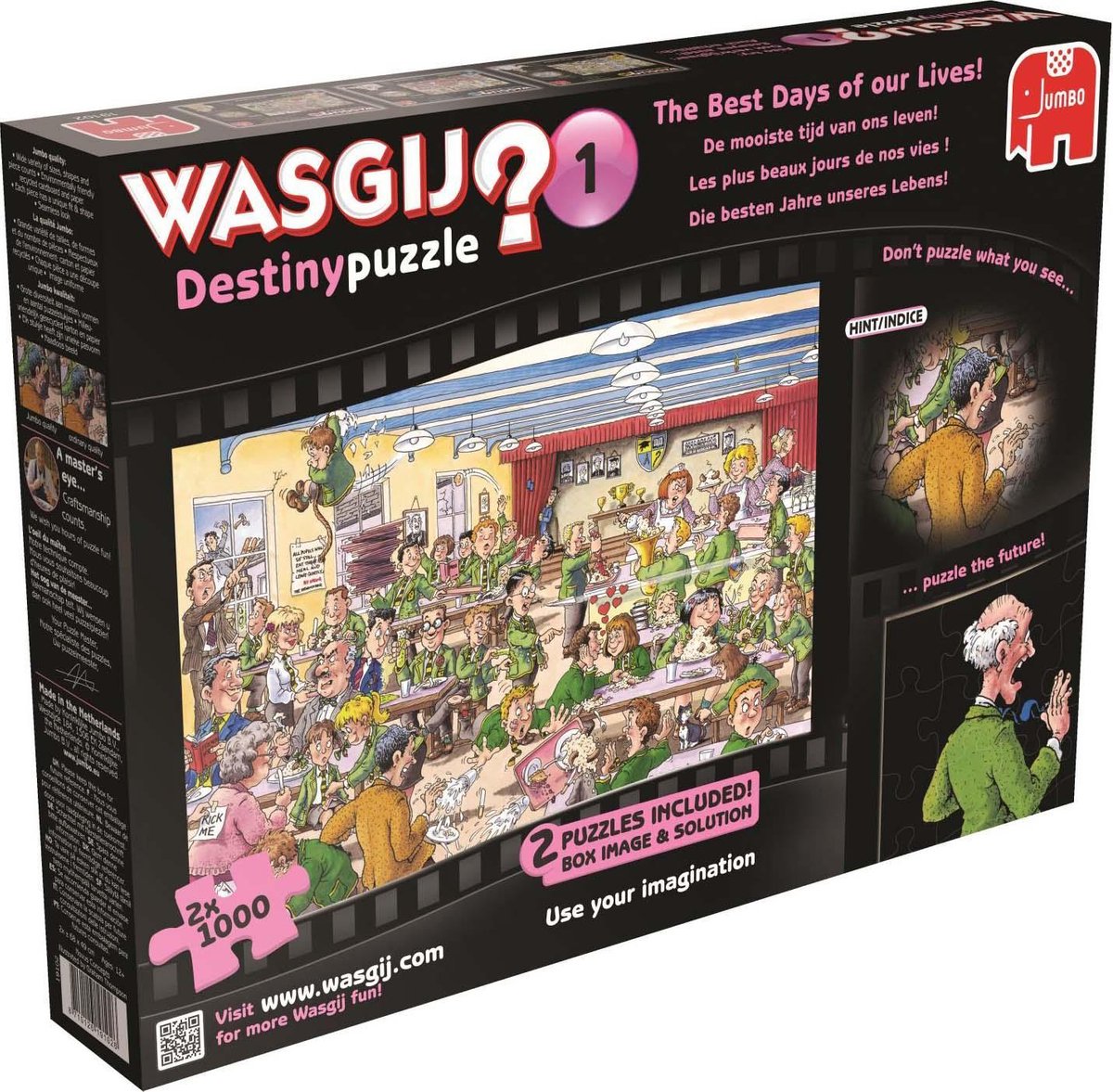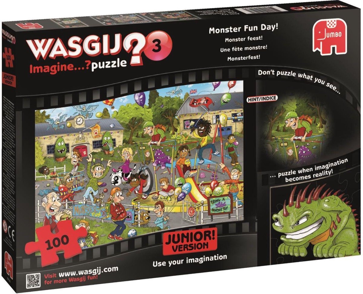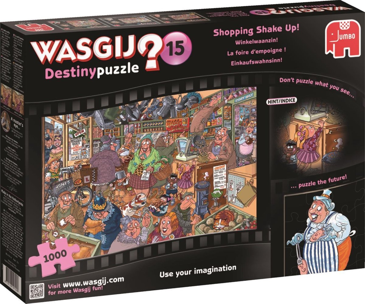 Wasgij Imagine: “Puzzel je de volgende scène”. Je puzzelt wat als een dagdroom van iets/iemand op de doos waarheid zou worden (lijkt dus op What if).