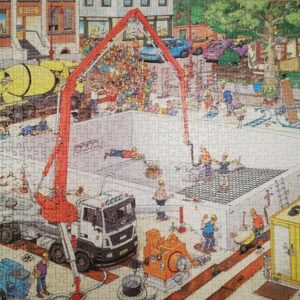 Ik heb deze puzzel nog niet gemaakt. Maar heb al wel gehoord dat hij heel populair is! Heb jij hem al wel gemaakt? Geef dan onderaan een review en upload je foto! Het is de puzzel ‘Bijna Klaar’ (Almost Ready) – dit is nummer 20037, uitgifte in 2020. Deze puzzel is getekend door Jan van Haasteren van de Studio Jan van Haasteren. Het is deze puzzel: