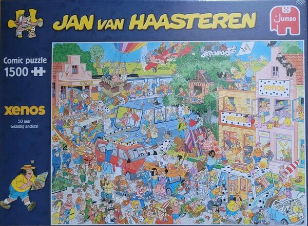 Opeens verscheen er op 15 Oktober 2023 een bericht op een Facebook pagina van iemand die de puzzel ‘Jan van Haasteren Xenos 50 Jaar – Gezellig Anders’ had. Deze puzzel werd aan het personeel gegeven omdat Xenos 50 jaar bestond. In eerste instantie een exclusieve oplage dus en alleen gegeven aan Xenos personeel, niet verkrijgbaar via de winkels. Huh? Niemand die daar iets van wist, en opeens begint de verzamelaars-run op deze puzzel! Echter – update dd 17 oktober, berichtgeving van de Xenos is ‘In de week van 6 November 2023 is het toch mogelijk de puzzels in onze winkels en via de Xenos website te kopen! Goed nieuws voor de verzamelaars dus…..Het is de puzzel ‘Vakantiekriebels‘ die reeds is verschenen in 1000 stukjes en de tekenaar daarvan was Dick Heins. Deze prachtige puzzel ‘Vakantiekriebels’ is dus opnieuw uitgegeven door Xenos. Deze puzzel van Xenos verschilt op een aantal punten van de puzzel Vakantiekriebels, namelijk: