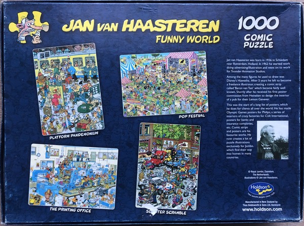 Beschrijving Dit is een zeldzame puzzel die is uitgegeven door de Nieuw-Zeelandse puzzelfabrikant Holdson Funny World (HFW).Het uitgifte jaar is onbekend en deze puzzel heeft als nummer 09903. Het bijzondere is, er zijn vier puzzels met het nummer 09903, allemaal uitgegeven door HFW, te weten: Het is echt een verzamelaars-item om deze vier puzzels van Holdson Funny World te verzamelen.