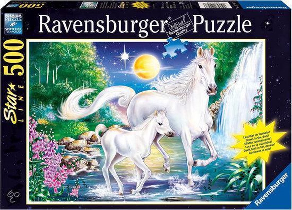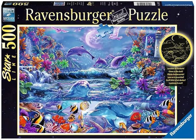 De ‘Starline’-serie van Ravensburger is een reeks legpuzzels die bekendstaat om haar unieke eigenschap: de puzzels gloeien in het donker. Deze serie onderscheidt zich door het gebruik van lichtgevende inkt, waardoor bepaalde delen van de puzzel oplichten in het donker. Dit voegt een extra dimensie toe aan het puzzelplezier, omdat het eindresultaat zowel overdag als ‘s nachts bewonderd kan worden. De afbeeldingen in de ‘Starline’-serie zijn vaak sprookjesachtig of kosmisch van aard, met thema’s als sterrenstelsels, nachtelijke landschappen en mythische scènes. Ravensburger staat bekend om zijn hoge kwaliteit puzzels, en de ‘Starline’-serie is daar geen uitzondering op, met stevige stukjes en heldere, levendige kleuren die het puzzelen zowel uitdagend als belonend maken.